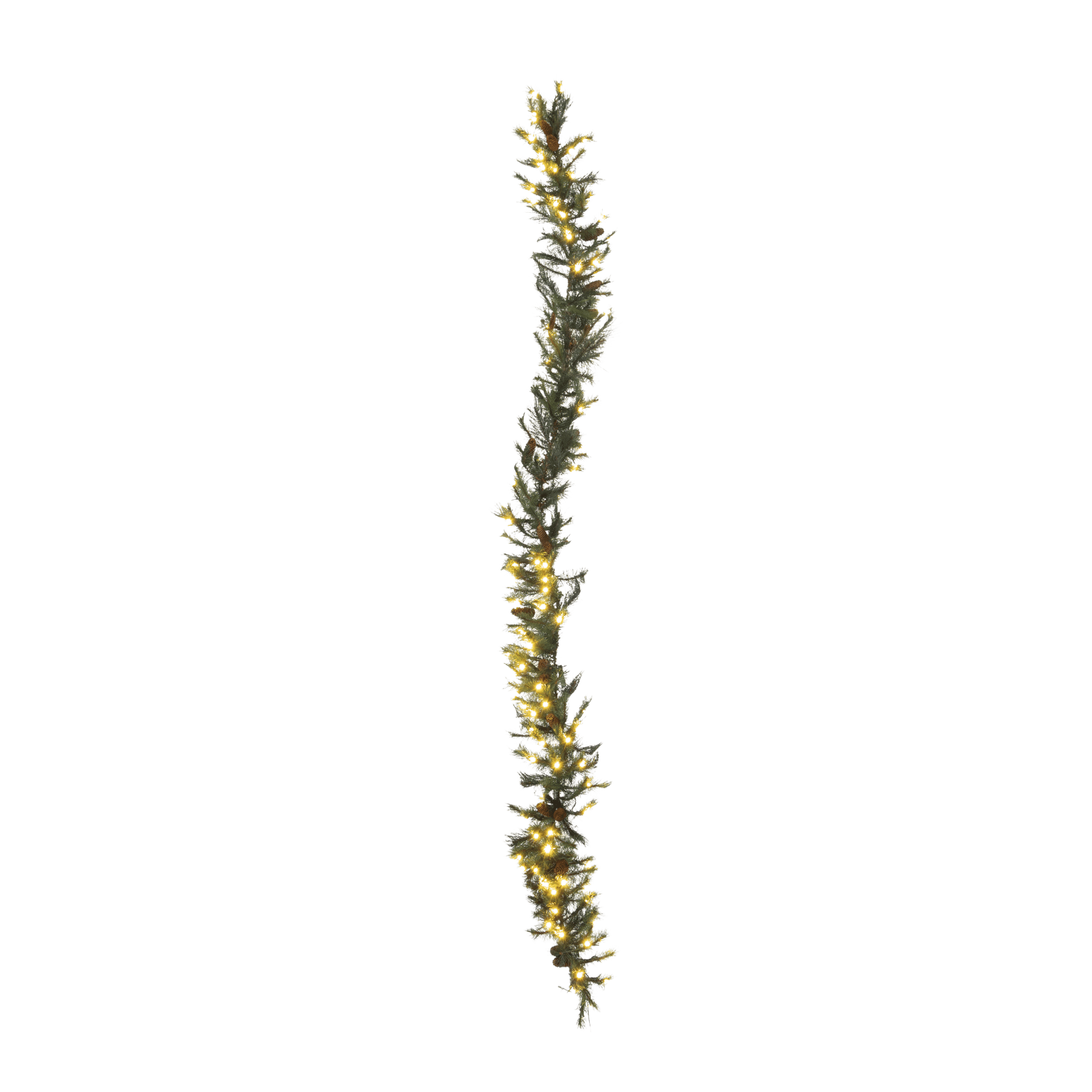 Stor og fyldig girlander med ekte kongler. Dyp i grønnfargen med flate nåler. kjernen er ståltråd/vire hvor du kan forme hver enkel gren etter ønske.