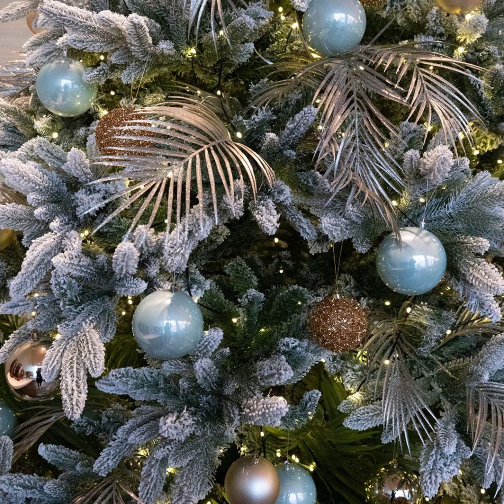 Vi har et bredt utvalg av kunstige juletrær, girlandere, kranser og julekuler!