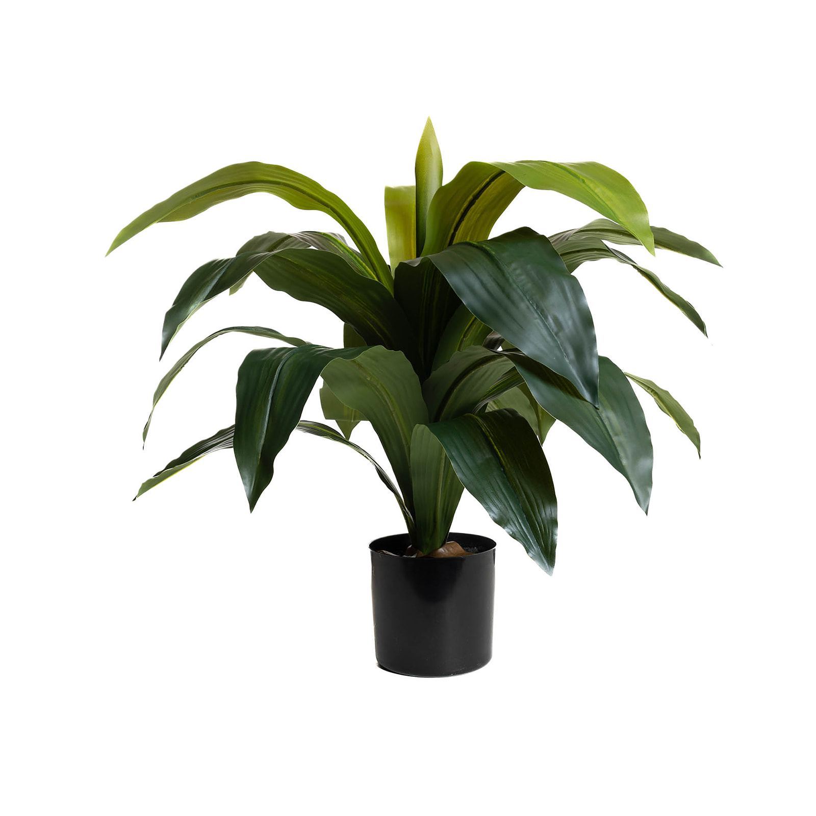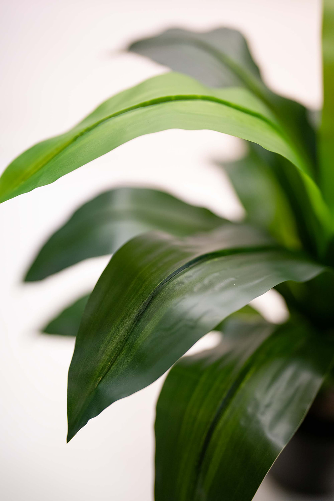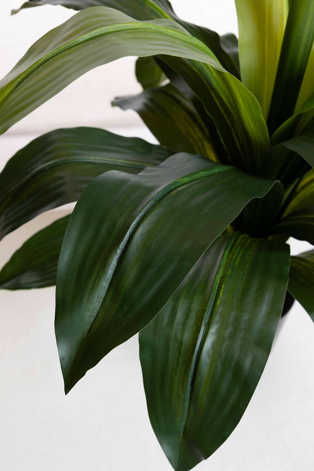 Grønne striper i grønne blader, en kort variant av Dracena-planten har vi her. Nydelig i hyller, og til metervis av plantekasser sammen med høyere beplantning. Spillet i grønntonene skaper liv. Bladene lar seg lett forme slik at den kan passe inn nesten over alt.