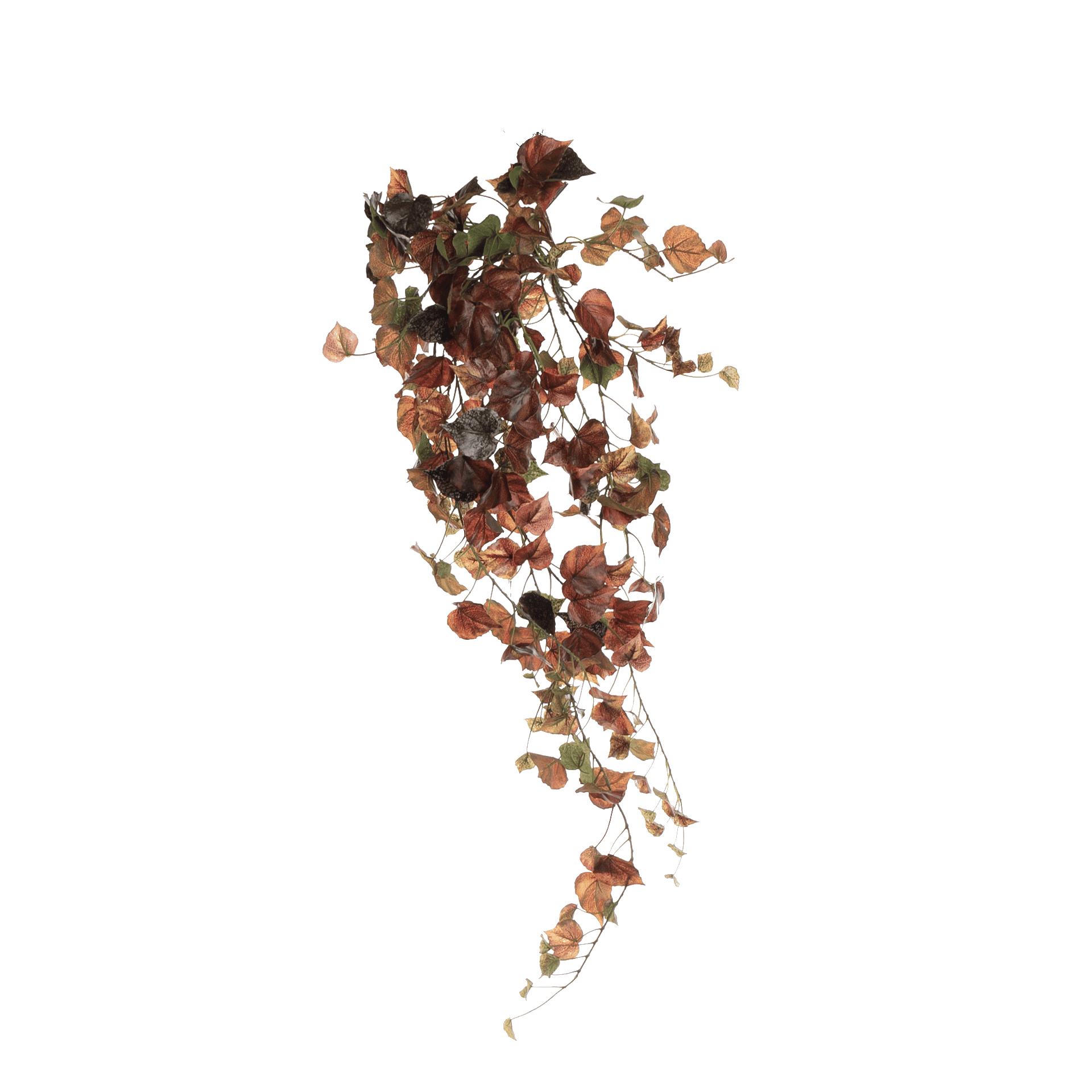 Frodig, burgunder og rustfarget henge/klatreplante. Spettet mønster i bladverket av de rødlige tonene med litt gulgrønt, – gjør denne veldig naturtro. En favoritt til høst-dekorasjonene.