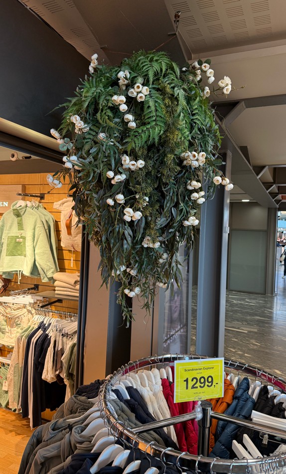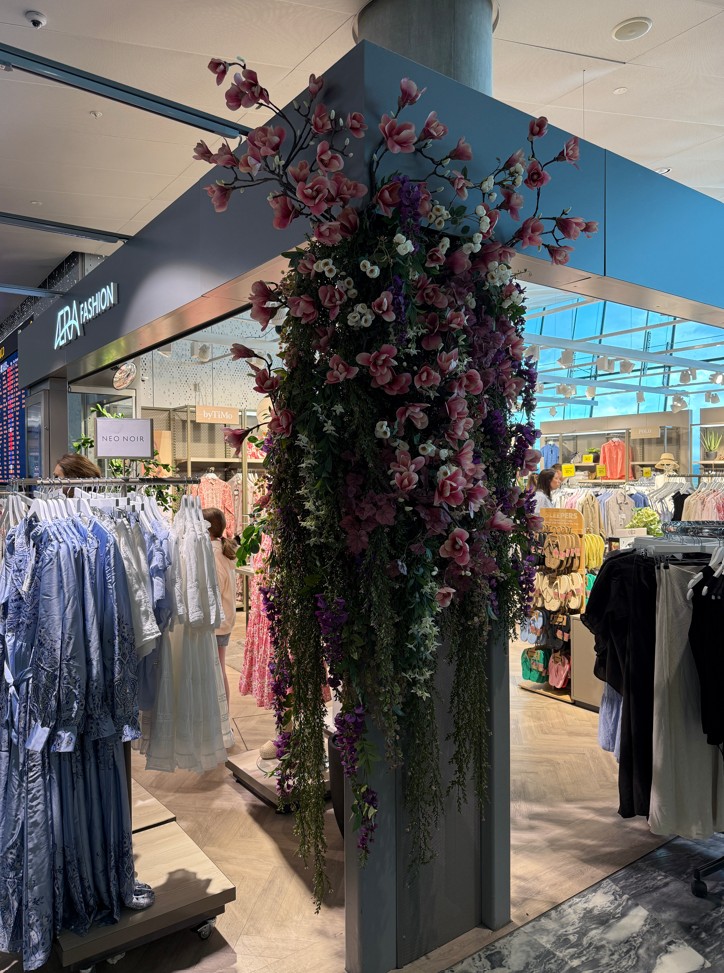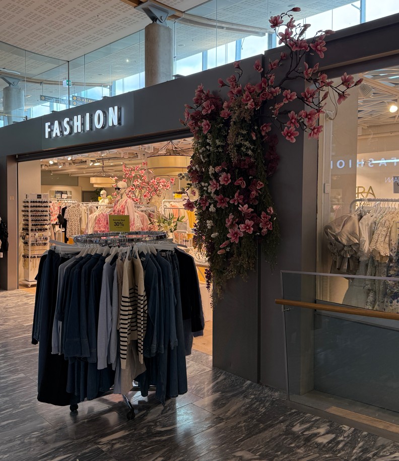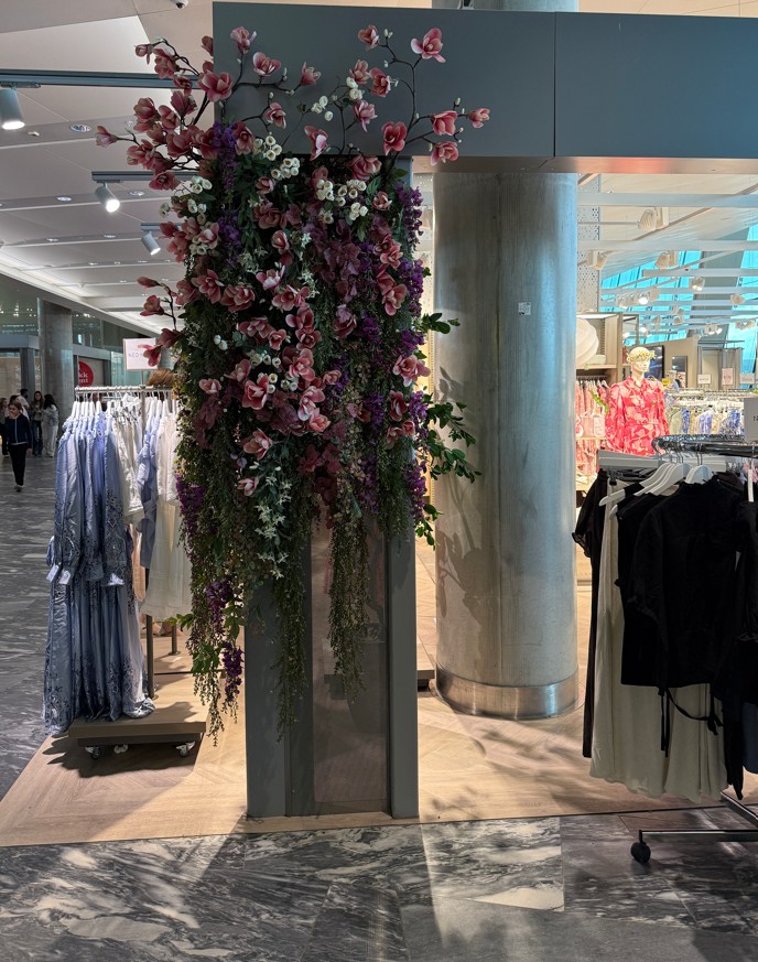 I sommer dekorerte vi fasaden foran Æra Fashion på Oslo Lufthavn Gardermoen – både innland og utland. De ønsket sommerlige blomster med eget preg på dame- og herreavdelingen. Våre dyktige dekoratører produserte både blomstervegg, blomsterkuler og hengeplanter som omkranset en ganske kjedelig søyle. Vi ble veldig fornøyde med resultatet!