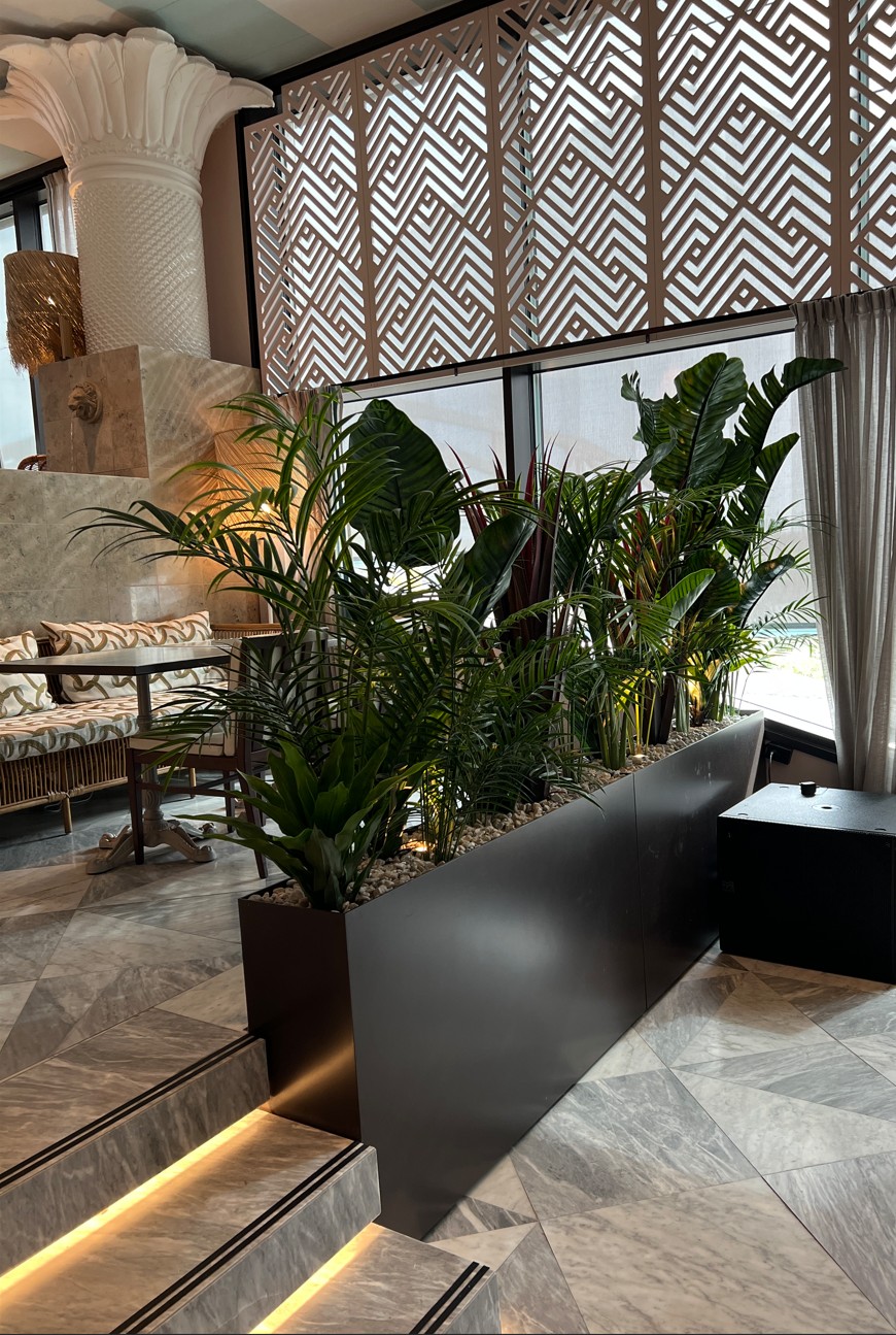 Vi har levert og plantet flere områder som inngangsparti, lobby, restaurant, oransjeri, uteservering, SPA-avdeling, konferanse- og møterom.