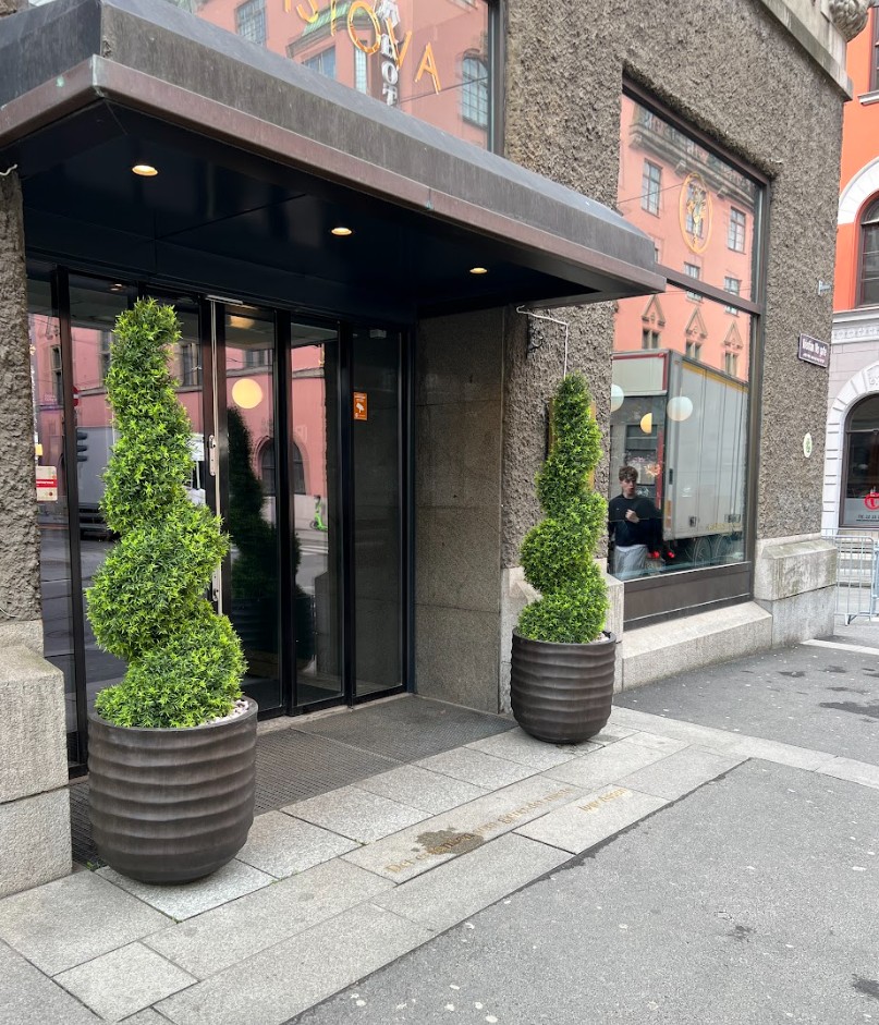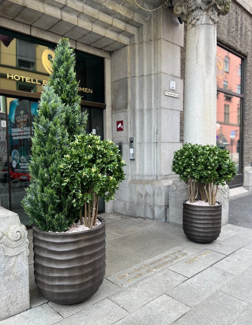 Hotell Bondeheimen har fått flotte UV-bestandige kunstige planter foran sine inngangsparti. Disse holder seg grønne og frodige helt uten vanning!