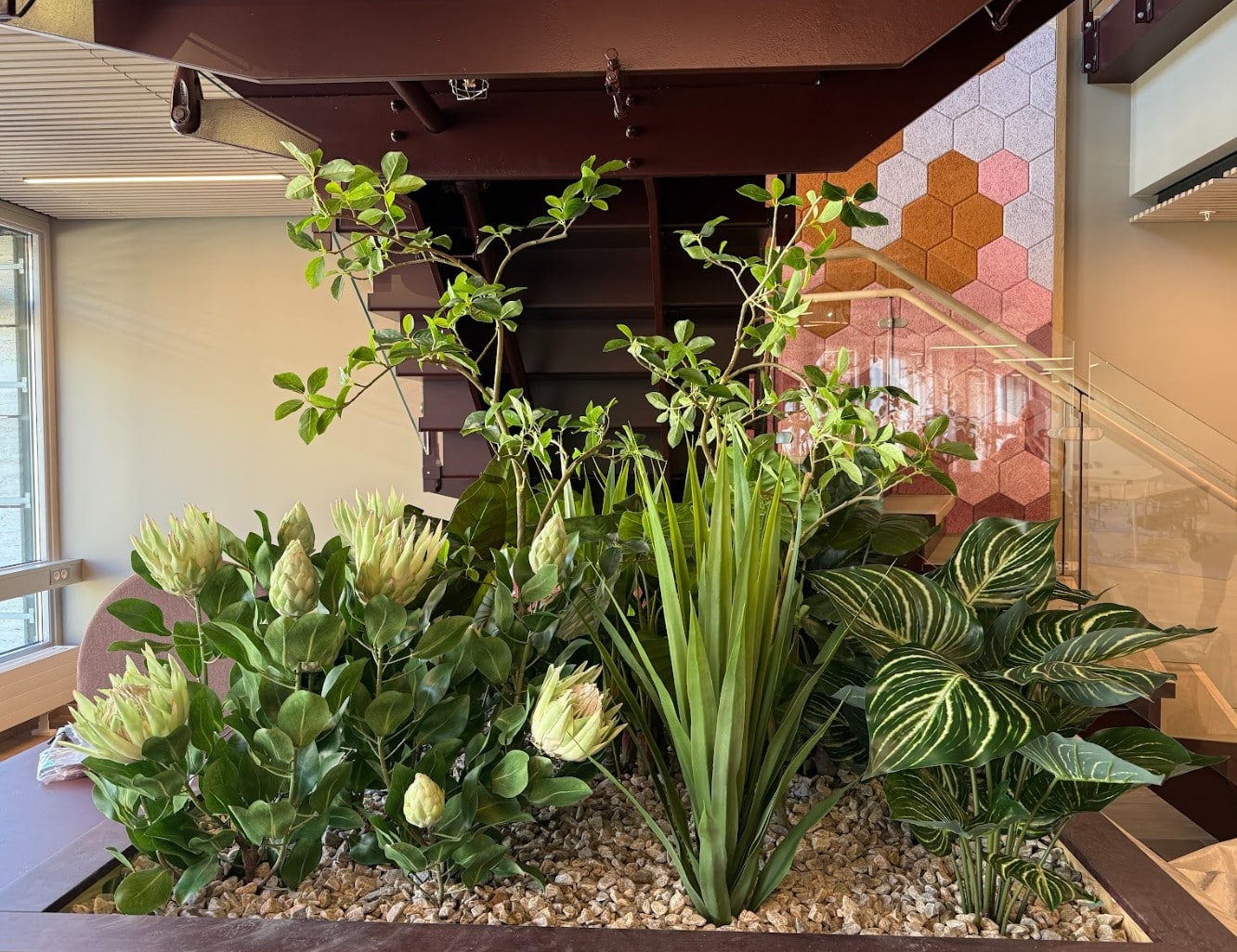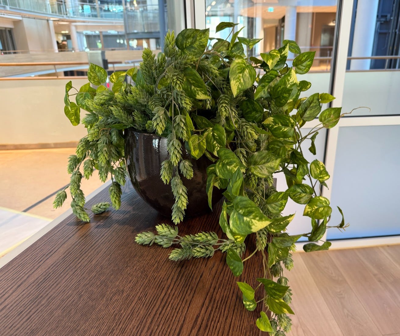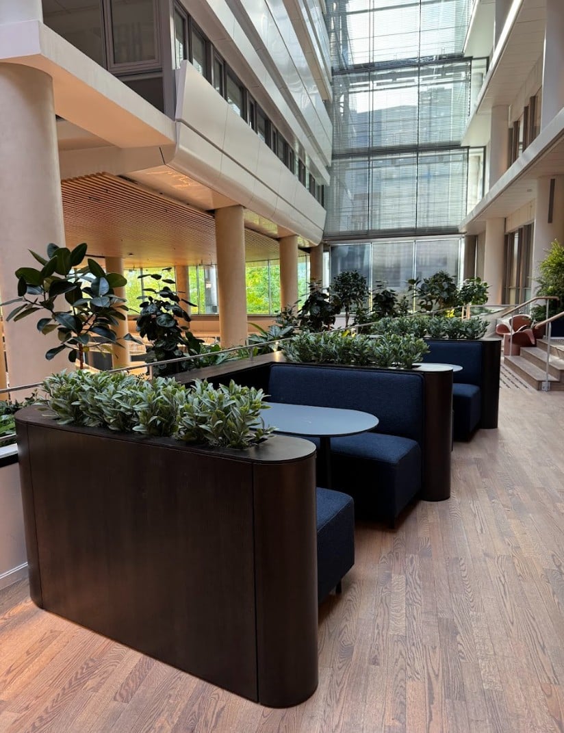 De nye lokalene til KPMG er så lekre! Her har vi plantet alt fra plantekasser som blir brukt som skillevegger i det åpne landskapet, potter i hyller, store bedd og grupper med potter og planter i sosiale soner.
