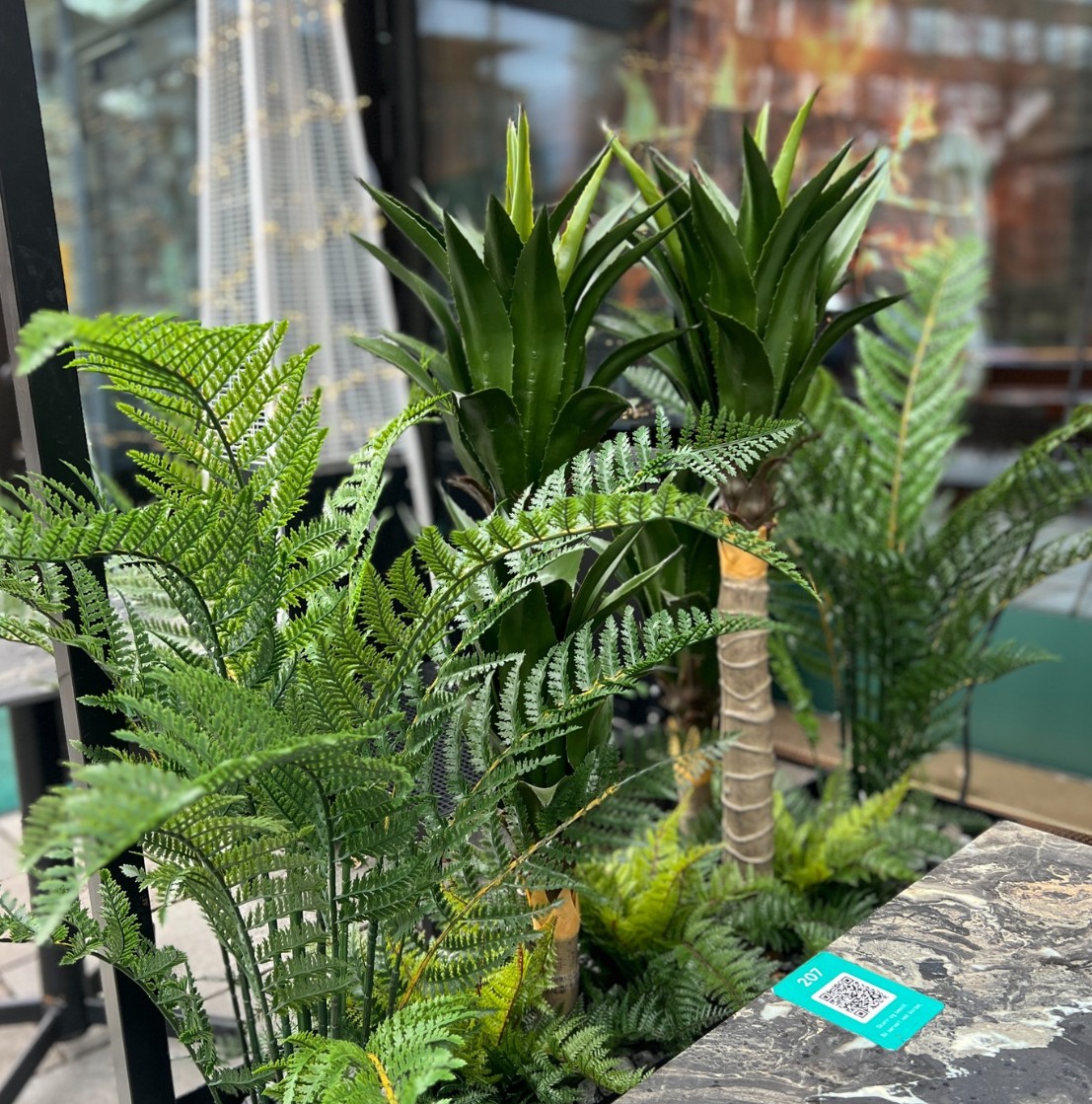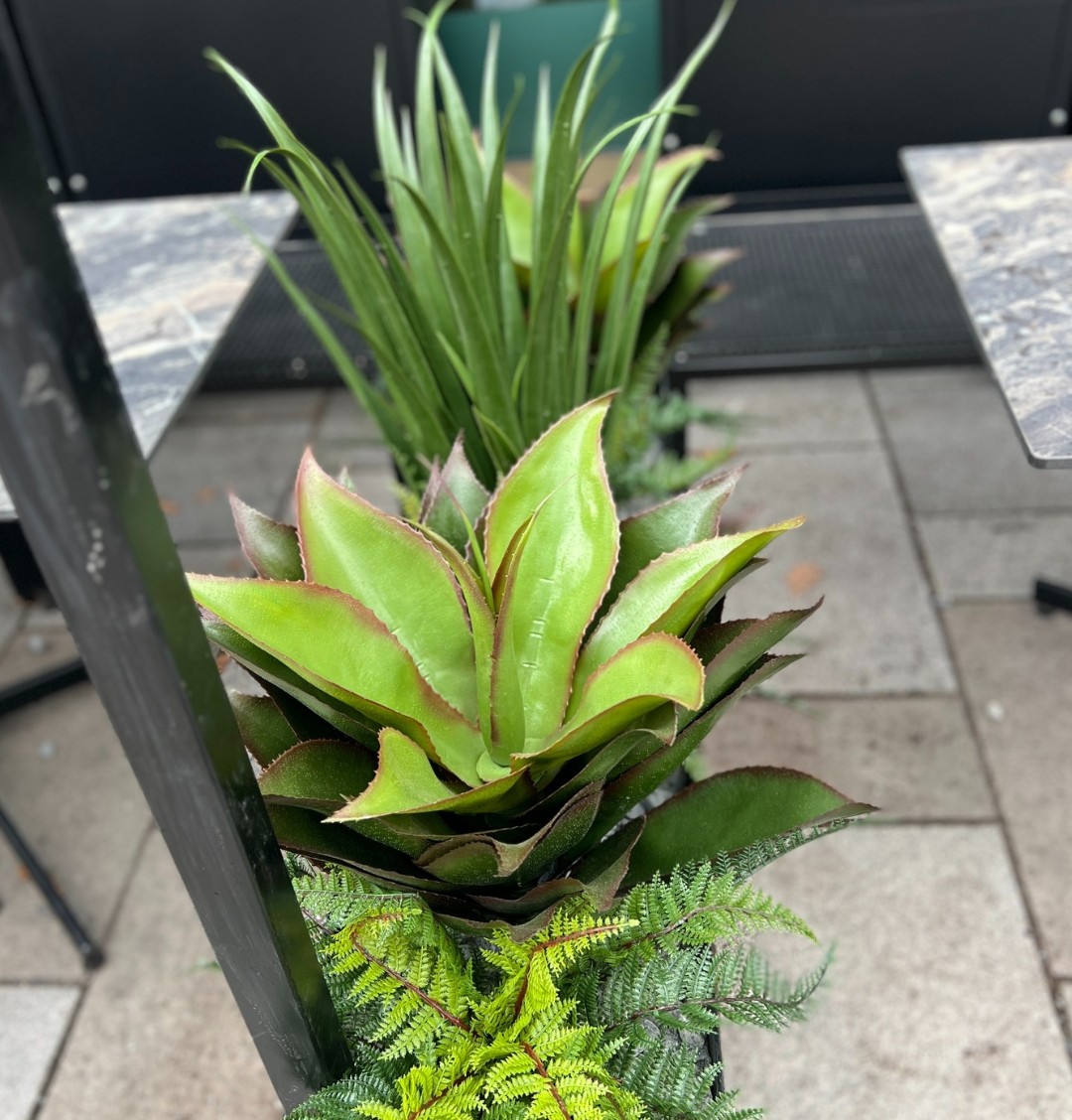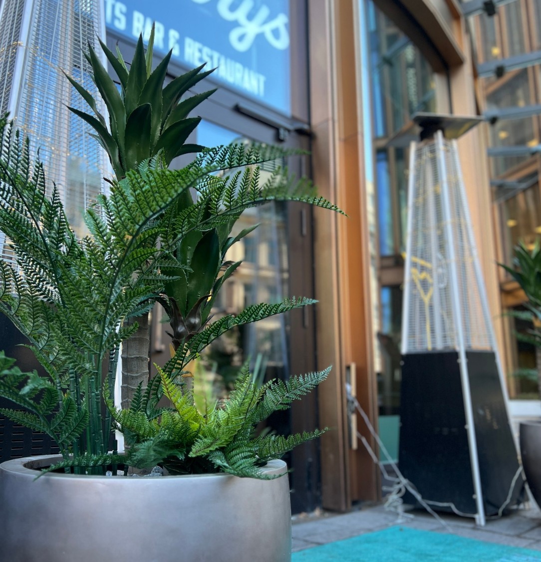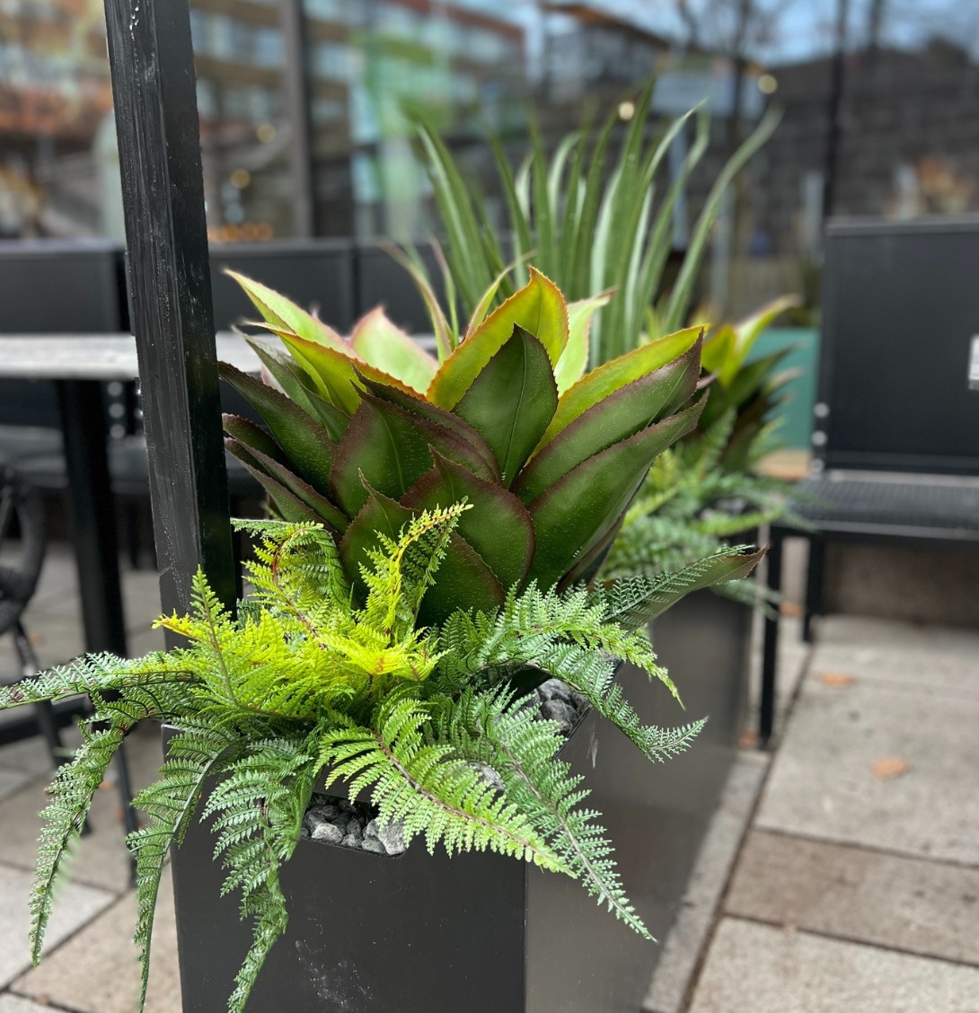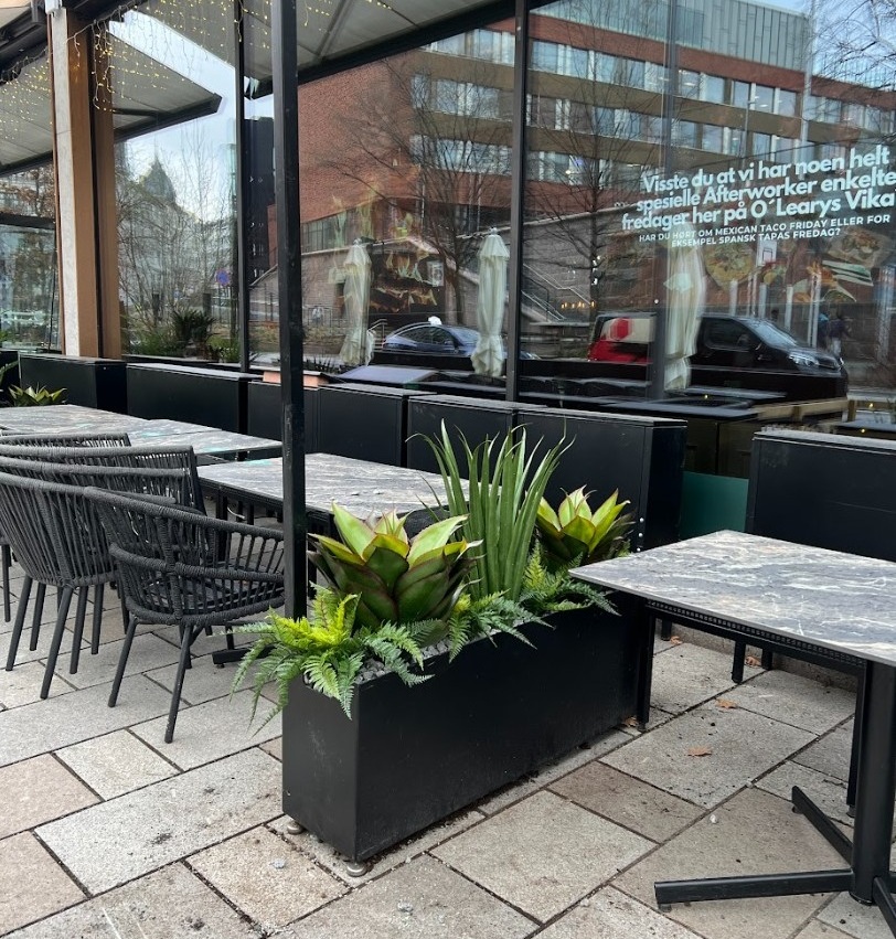 O’Learys Vika ville oppgradere sitt inngangsparti og uteservering. Da er det perfekt med UV-bestandige kunstige planter som tåler sol. Disse holder seg grønne og fine – helt uten vanning!