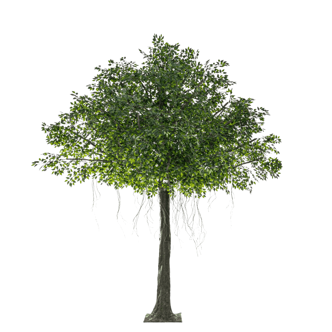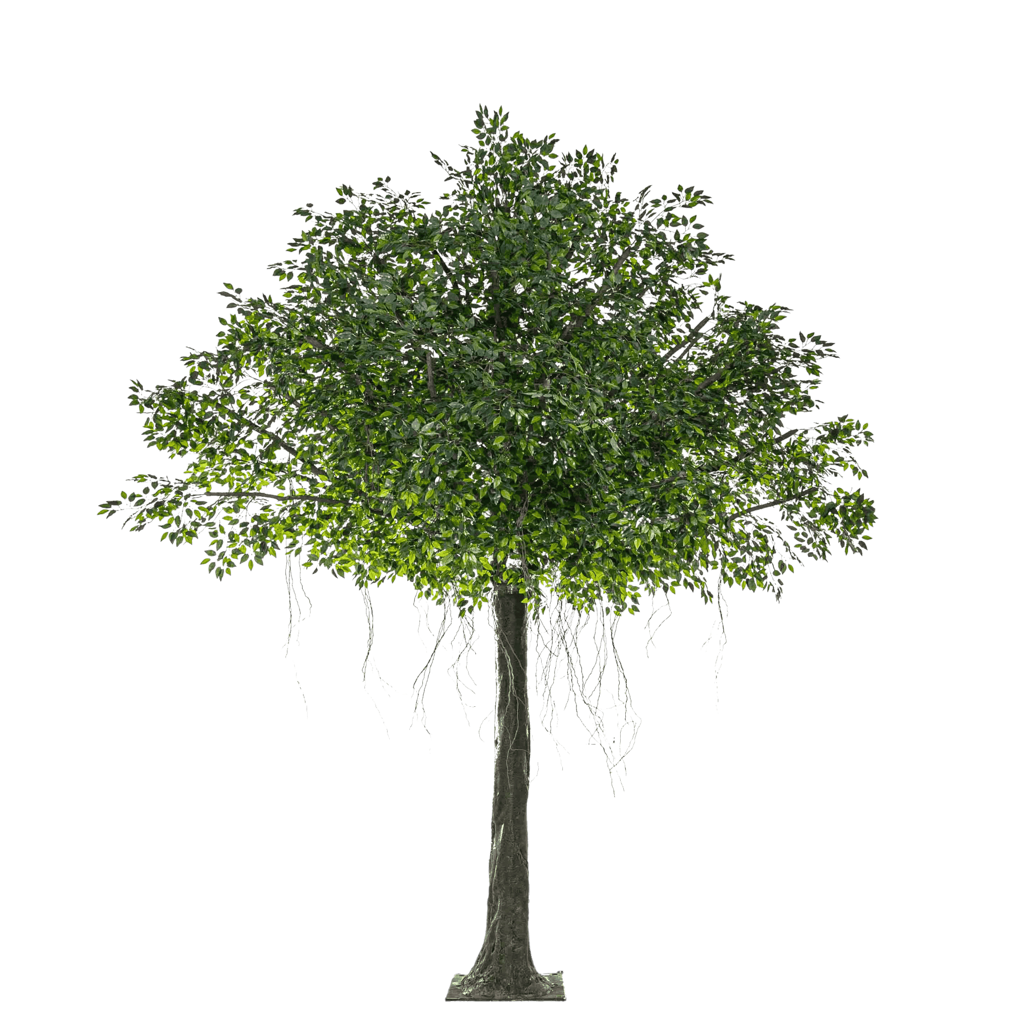 Totalhøyde på treet er 425cm. Bredden på kronen er ca 340cm. Høyden fra gulvet og opp til bladene er 196cm. Diameter på stammen er ca 65cm. Monteringsplate med skruehull L55,5cmxB55,5cm. Alternativt kan treet plasseres i en diger potte med fyll som sand og grus i tilstrekkelig skala for at treet skal stå forsvarlig. Settes opp på eget ansvar.